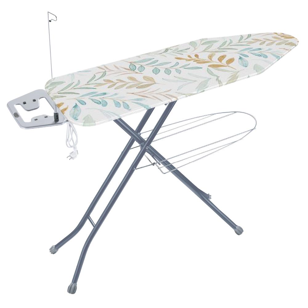 Kvalitetna daska za peglanje opremljena transportnim zaključavanjem, parna disipacija površine daske, elektroenergetske utičnice i el. nositelj kabela za napajanje.