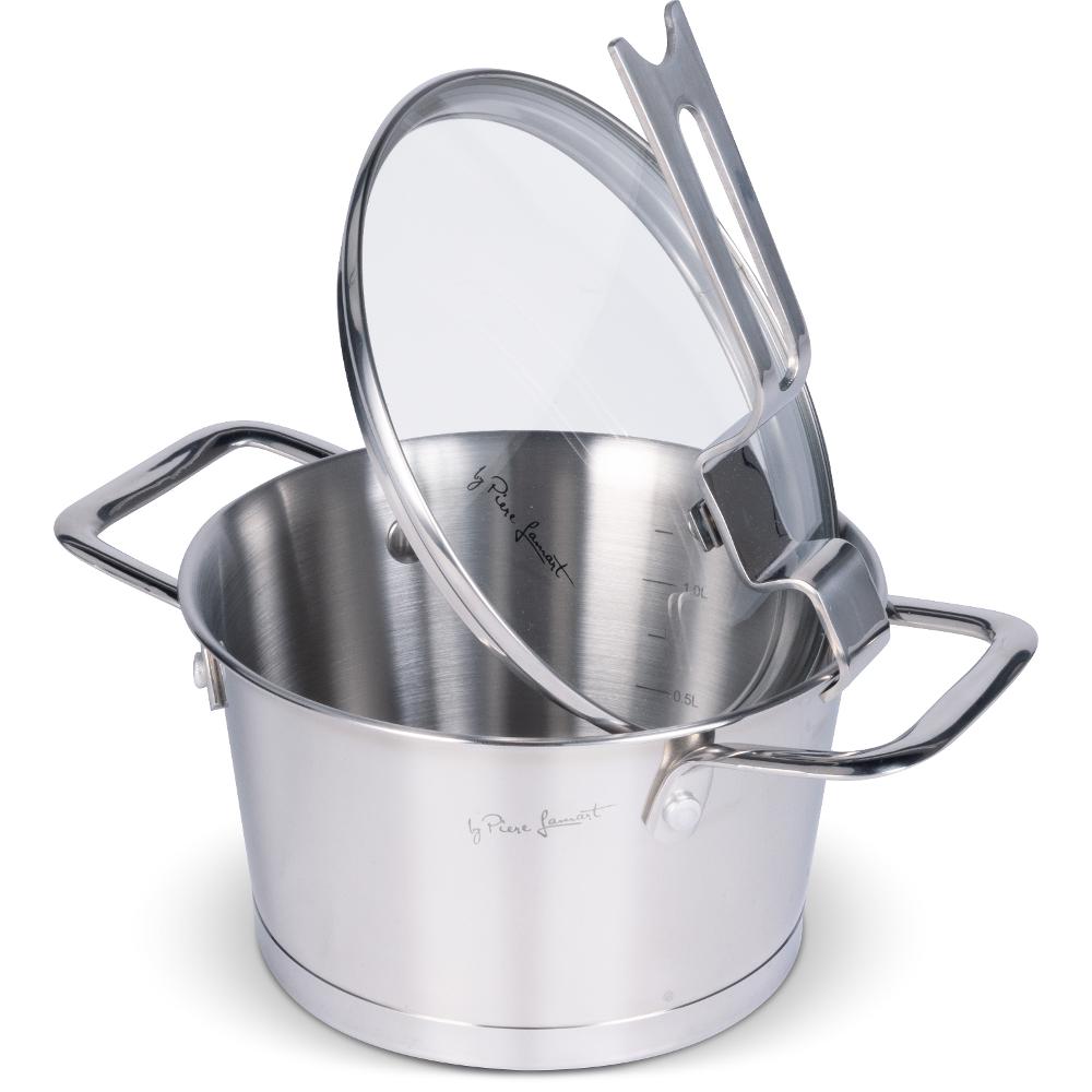Dizajnersko posuđe od prvoklasnog nehrđajućeg čelika obuhvaća čvrstu bazu s elegantnim ručkama za veću sigurnost, funkcionalnost i udobnost.