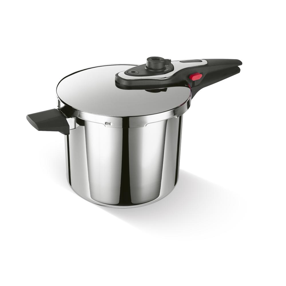 Četiri sigurnosne brave, pokazivač tlaka i dvostruki sigurnosni ventil jamče maksimalnu sigurnost tijekom kuhanja. Osnovica u "sendvič" izvedbi omogućuje ujednačenu distribuciju topline, koja skraćuje vrijeme kuhanja i štedi energiju. Suvremen dizajn lonca pridodaje elegantnom dizajnu vaše kuhinje.
