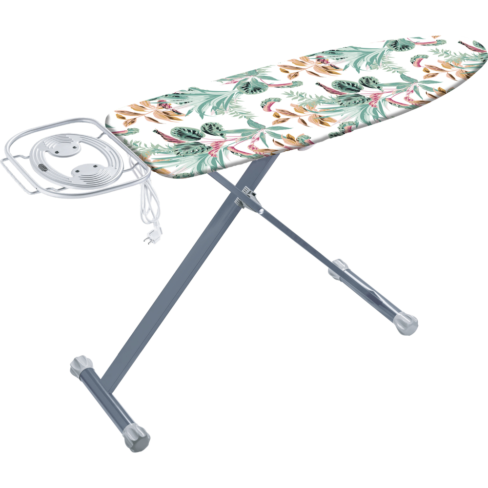Daska za peglanje je podesiva po visini s područjem za parenje do željeza sa silikonskim elementima, sprečava oštećenja na površini i željezo kada je stavljena na stranu.