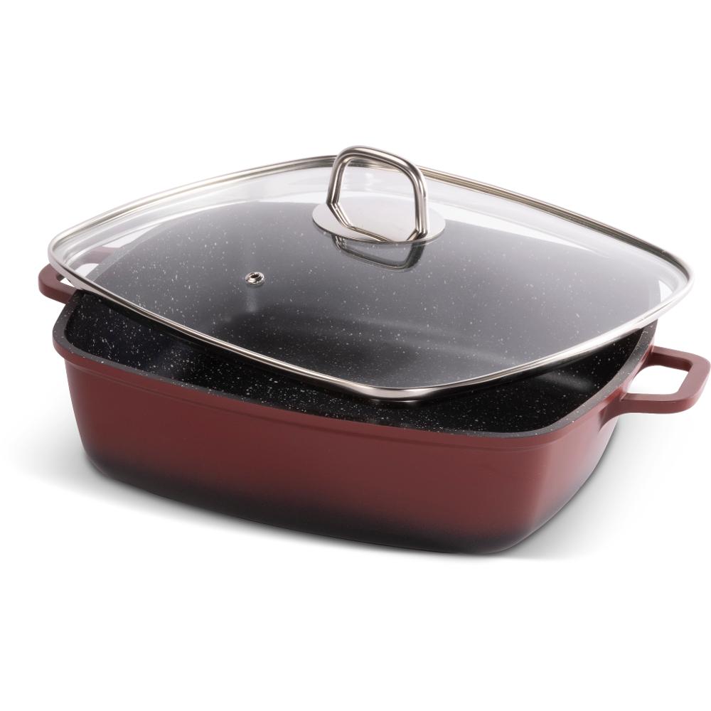 Posuđe je opremljen inedhezivnom površinom otpornom na grebanje i spaljivanje, debelim dnom s vrlo elegantnim ručkama za veću sigurnost, funkcionalnost i udobnost.